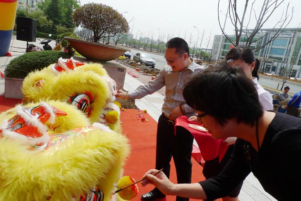 堂總和丁總為舞獅點(diǎn)金,寓意江寧旗艦店開(kāi)業(yè)大吉