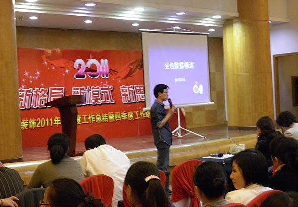 丁總對(duì)南京大區(qū)前三季度的工作進(jìn)行了總結(jié),設(shè)計(jì)費(fèi)、家裝產(chǎn)值、主材產(chǎn)值都取得了一定的增長(zhǎng);在具體的營(yíng)銷渠道上,網(wǎng)銷、老客戶、市場(chǎng)活動(dòng)三箭齊發(fā);推出的全包模式更是取得了一定的突破;我們可以很自豪的說,過去的9個(gè)月,我們做的不錯(cuò)!