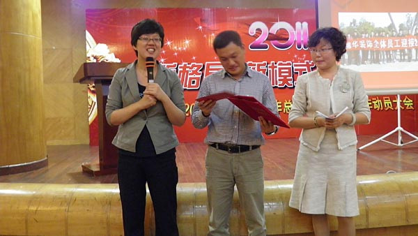 “新格局、新模式、新思路”2011年,南京大區(qū)所有的工作都是圍繞這9個(gè)字開展;但是所有的錦華人都理解這句話的意思,并在工作中執(zhí)行了嗎?員工大會(huì)一開始,丁總就連續(xù)發(fā)問,所有的錦華人也都在深思。