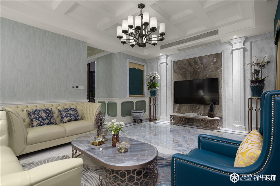 設計師:是的,業主那會看了挺多的效果圖以及實景照片,但沒有一個清晰的概念,說特別喜歡哪一個。巧的是,那會廣州正好有一個設計展和家具展,我們就去了。展會上,客戶特別喜歡一款沙發的樣式,所以我們就根據這個思路,找到了本案的設計風格——美式鄉村。