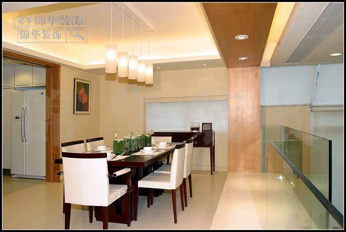 通過很長時間的接觸,了解了居住者的家庭構(gòu)成、喜好以及性格,從而確定這套房子的設(shè)計方向。在建筑空間上完全合乎居住者要求,于是設(shè)計方向定格在房屋的視覺效果以及居住者所要表達的情愫。 餐廳采用鋼化玻璃創(chuàng)造延展景深的效果,在燈光的開關(guān)變化中,為空間勾勒出層次豐富的燈影,在虛實交錯的光束紋理中,逐步帶給人們清馨淡雅的視覺享受。
